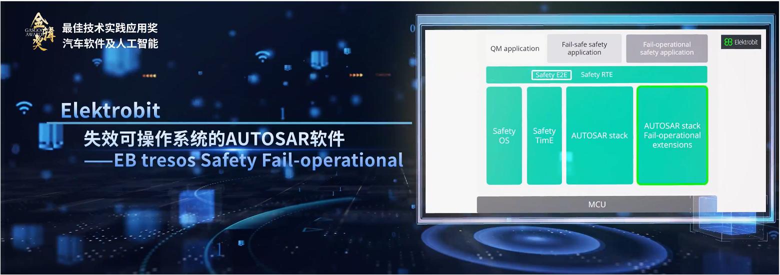 金辑奖由盖世汽车主办,旨在评选和表彰在汽车产业变革中具有前瞻性与影响力的企业及创新技术。EB tresos Safety Fail-operational是专为满足ISO 26262 ASIL D最高功能安全等级要求设计的独特软件解决方案,为L3及以上级别自动驾驶、智能底盘及关键控制系统提供完整的失效可操作解决方案。该平台通过硬件冗余与监控机制的深度整合,确保系统在发生故障时能够持续安全运行,为实现下一代智能汽车的关键安全功能提供了可靠保障。